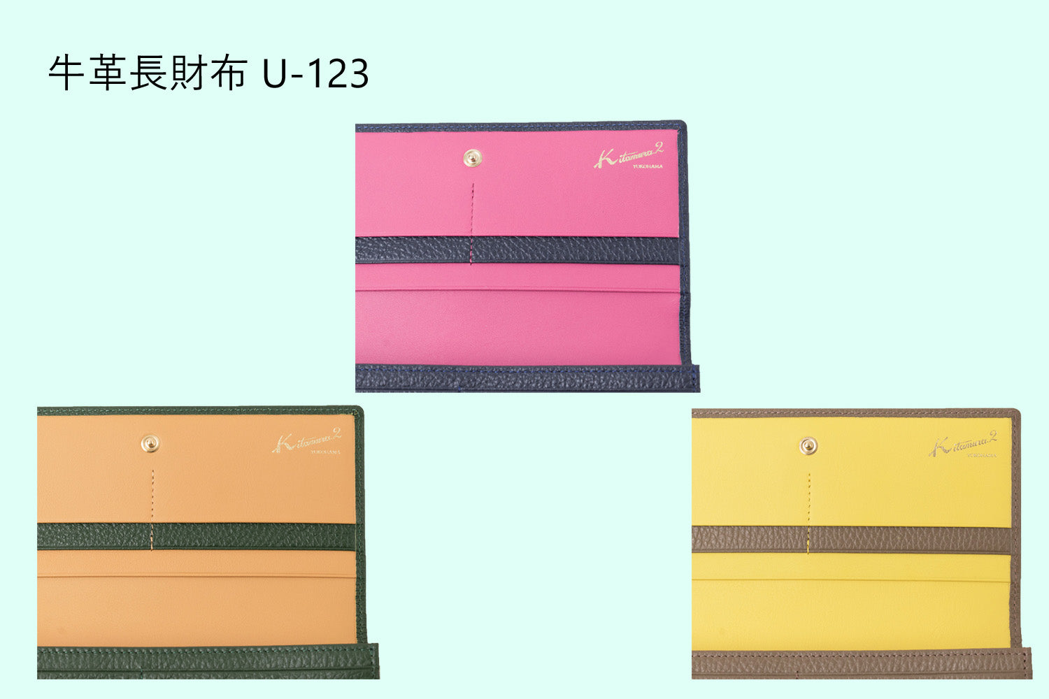 バイカラーデザインの牛革長財布。レシートなどの仕分けに便利なフリーポケットもあり、たっぷり収納できる優れもの。