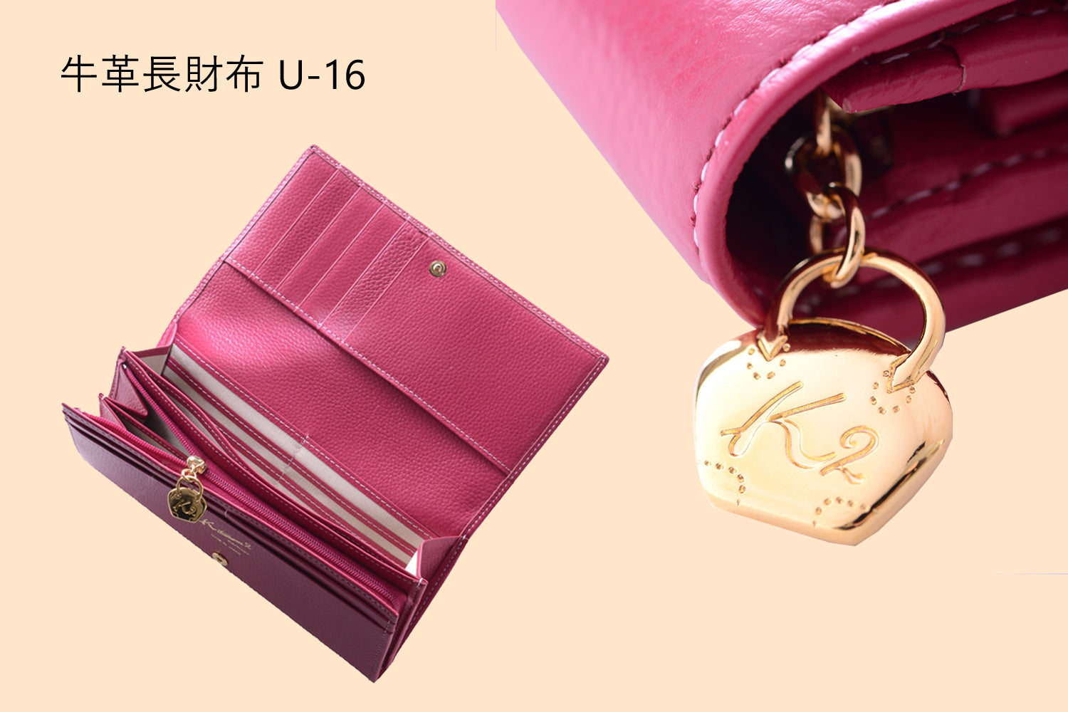 浮き出しの大きなKマークが目を引く牛革長財布。