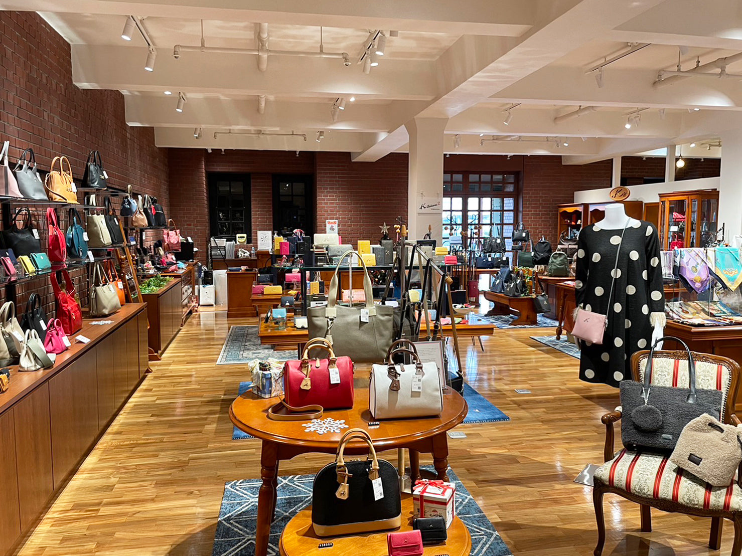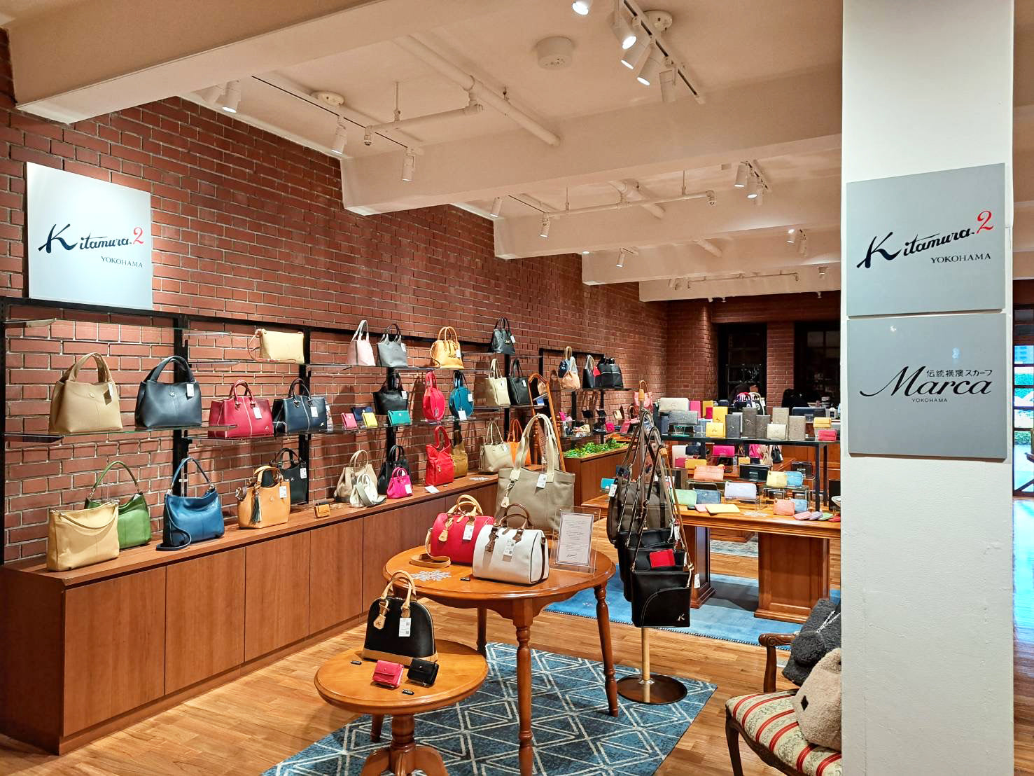 明治末期に国の模範倉庫として建設された赤レンガ倉庫。老舗ブランドで構成された1号館内「ヨコハマズベスト赤レンガショップ」は、キタムラK2を中心に伝統横濱スカーフなど横浜文化にふれあえる空間です。限定商品のレンガ柄2WAYバッグをはじめデニムバッグやマメガマなど定番アイテムはお土産としても大人気!