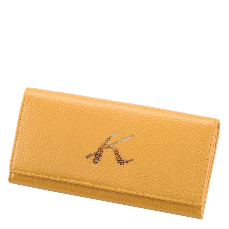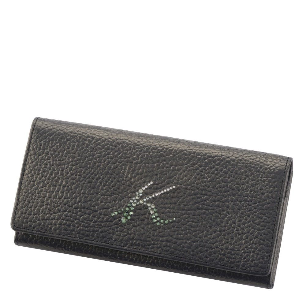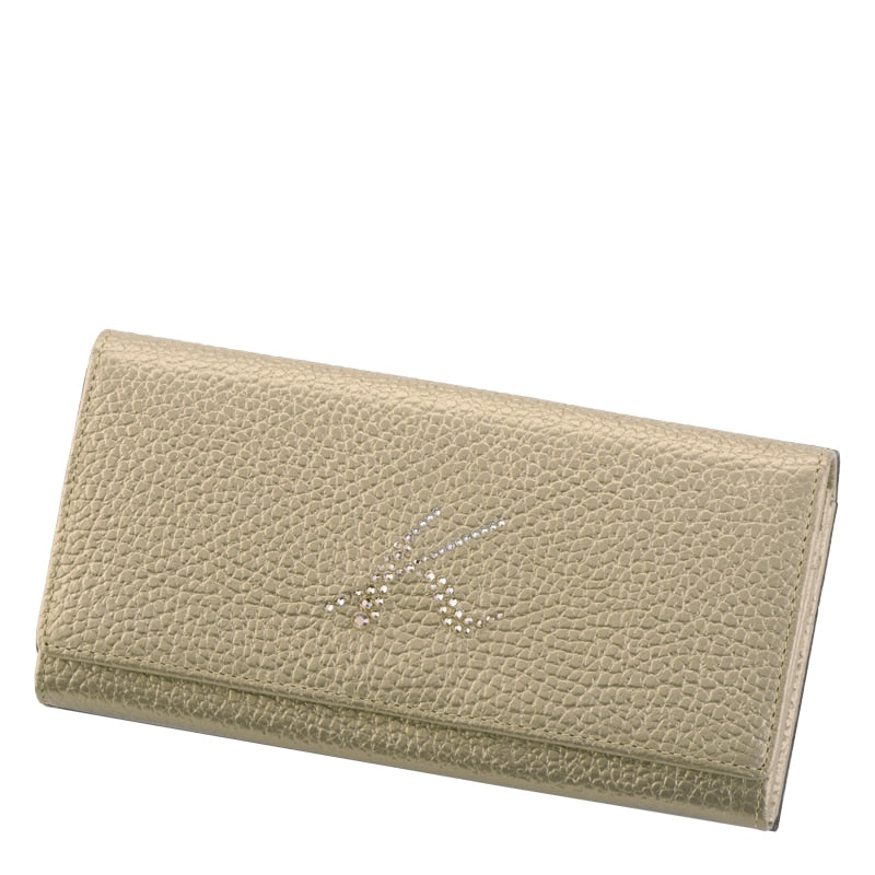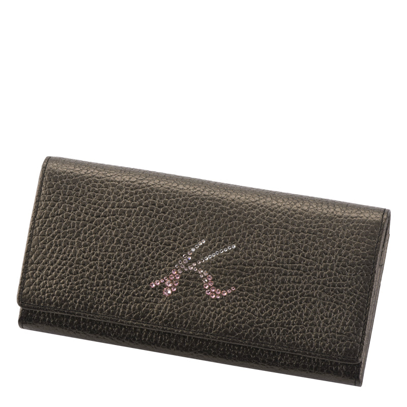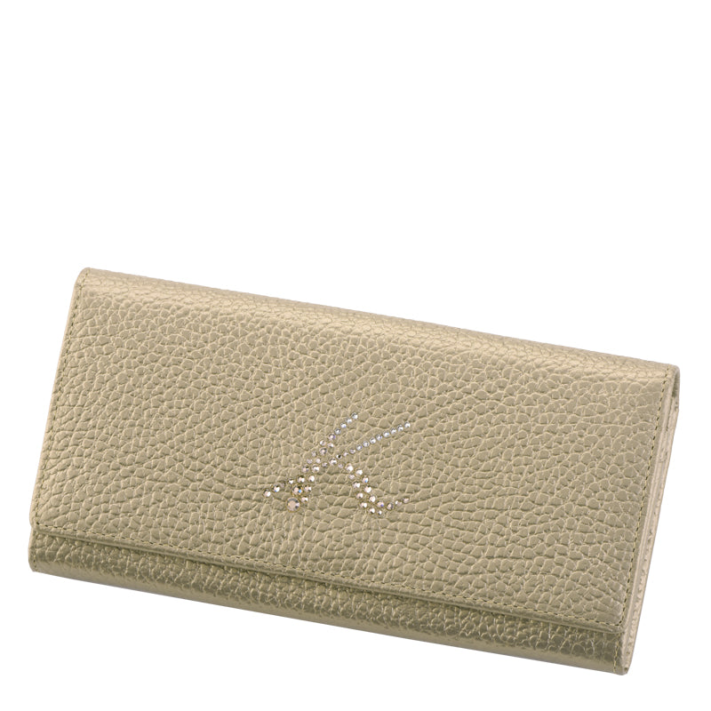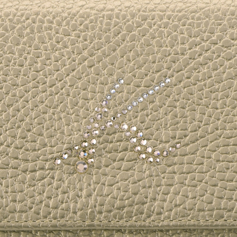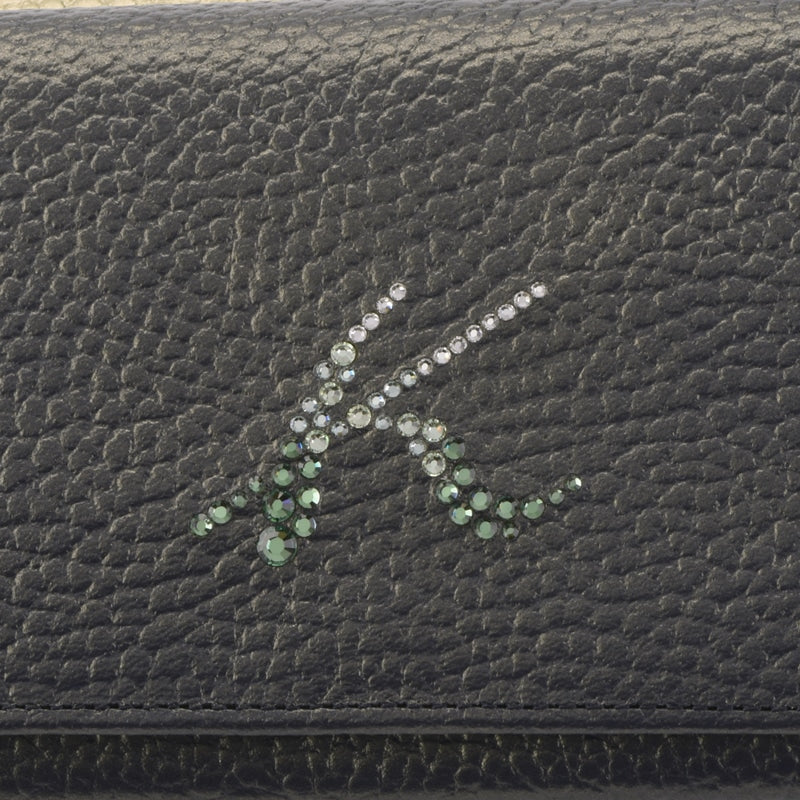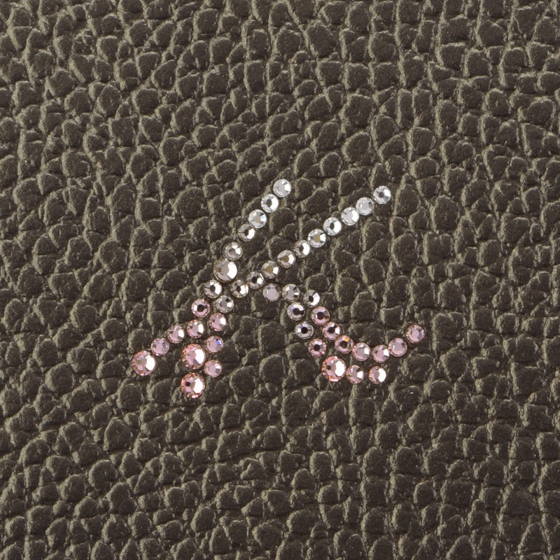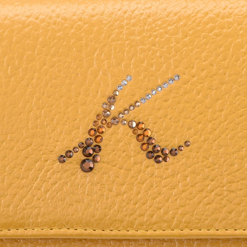 パール加工されたシュンクレザーに、グラデーション調の大小のラインストーンでKマークをあしらいました。 キズが目立ちにくく、艶と独特な色合いが自慢のアイテムです。