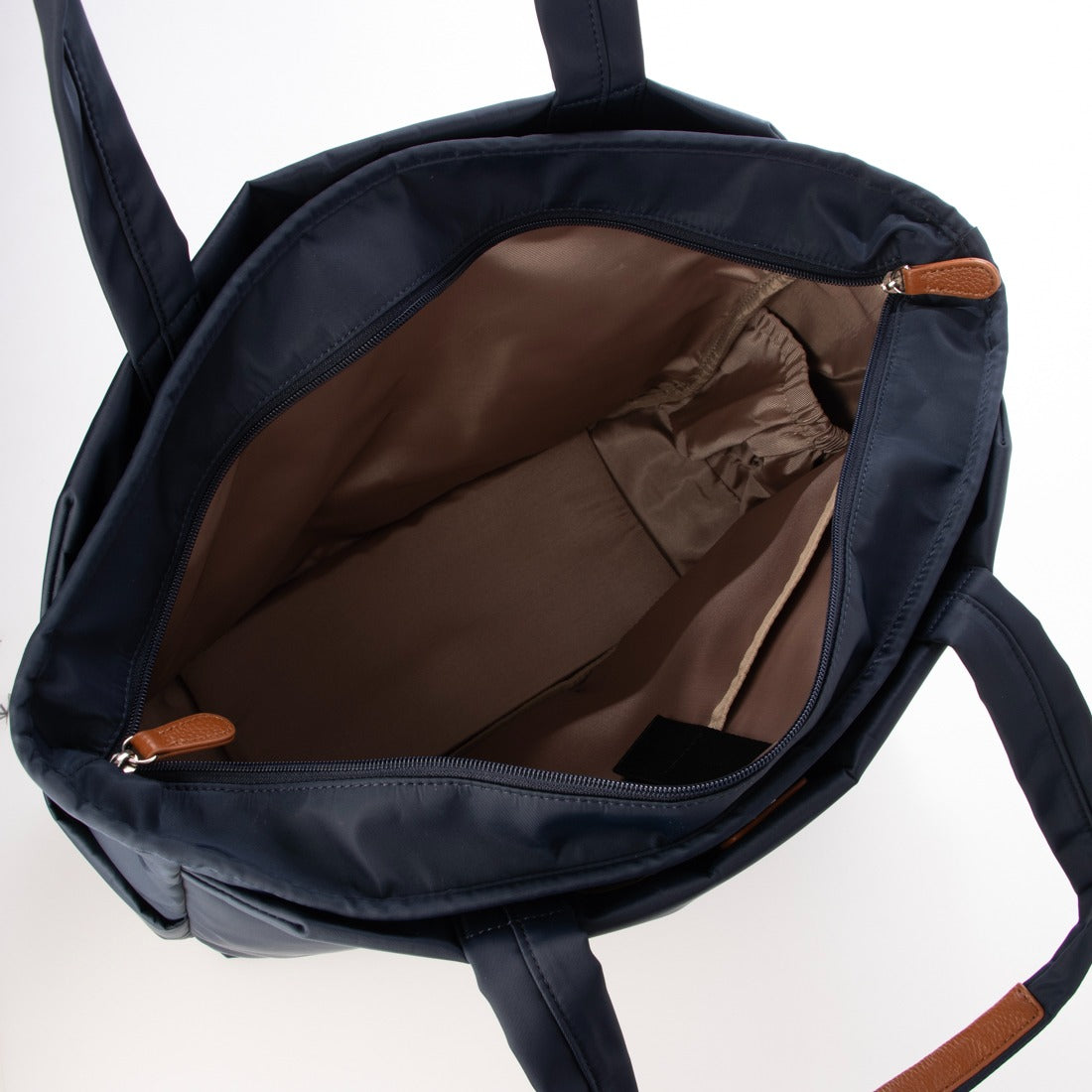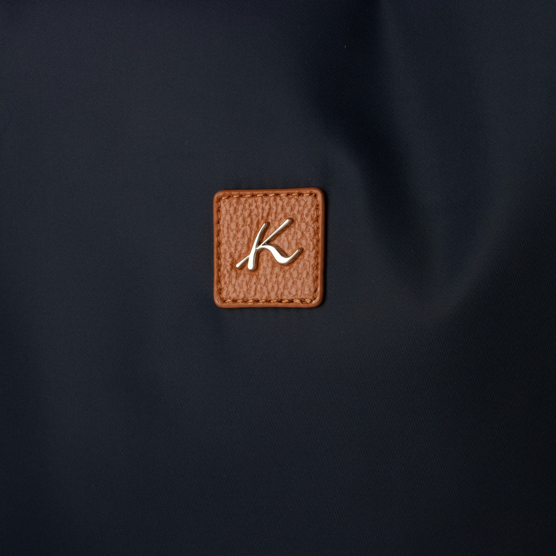 ハンドルは肩掛けしやすい長さで上部中央には革巻きあり。便利なサイドポケットも付いています