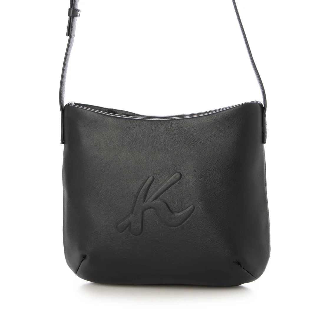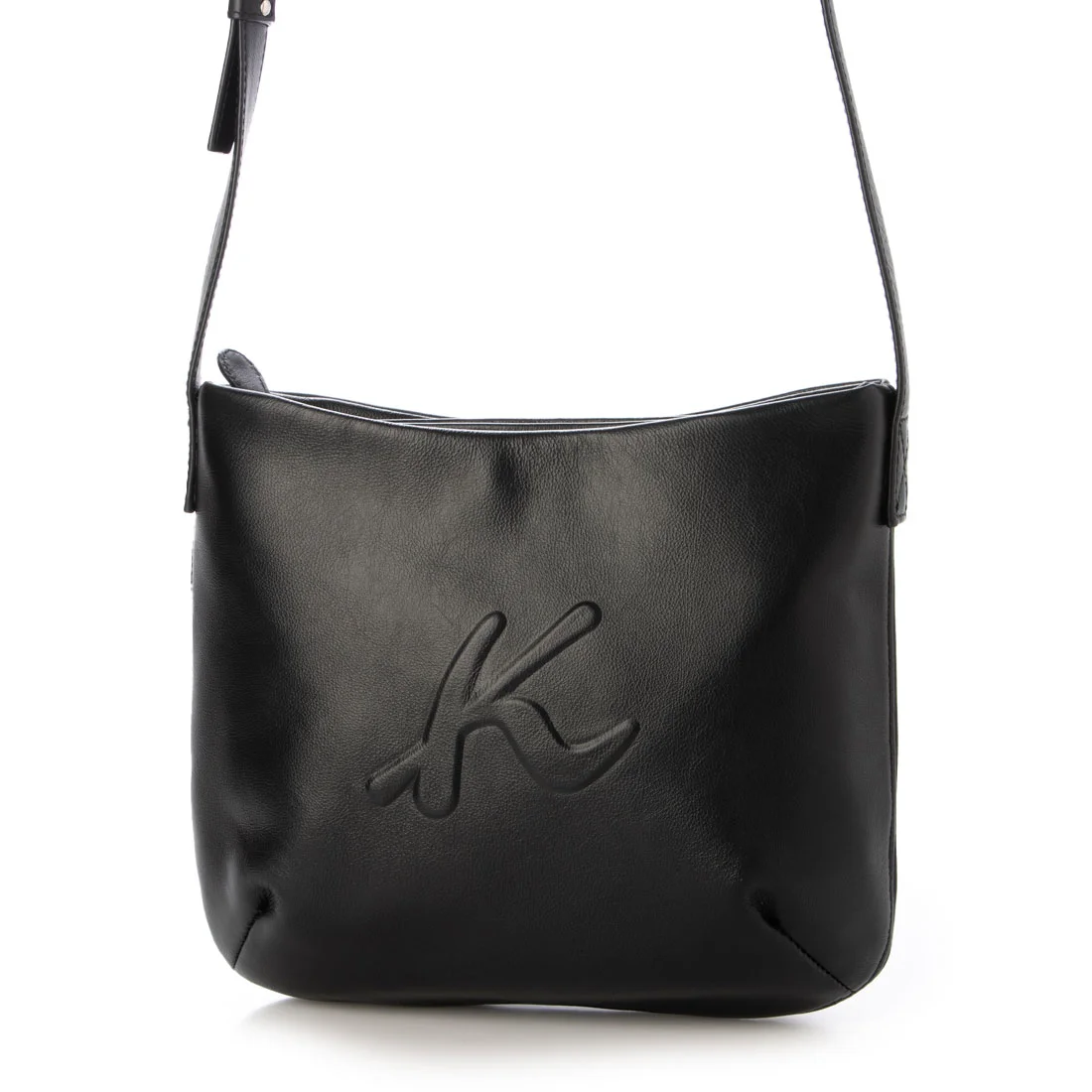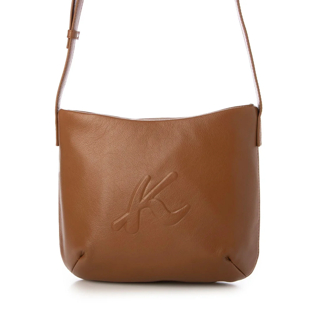 立体的な肉盛り加工のKマークが施されたショルダーバッグ。