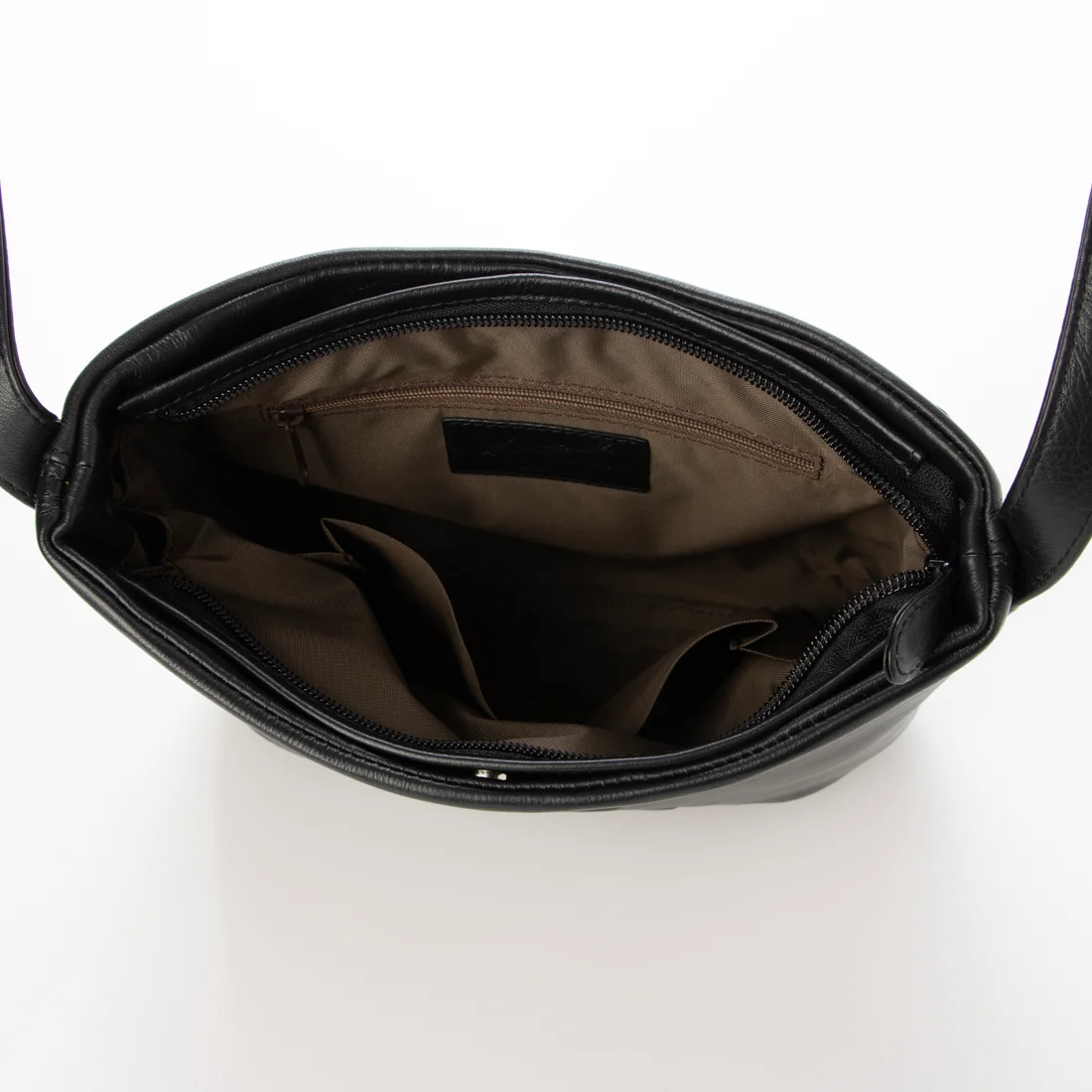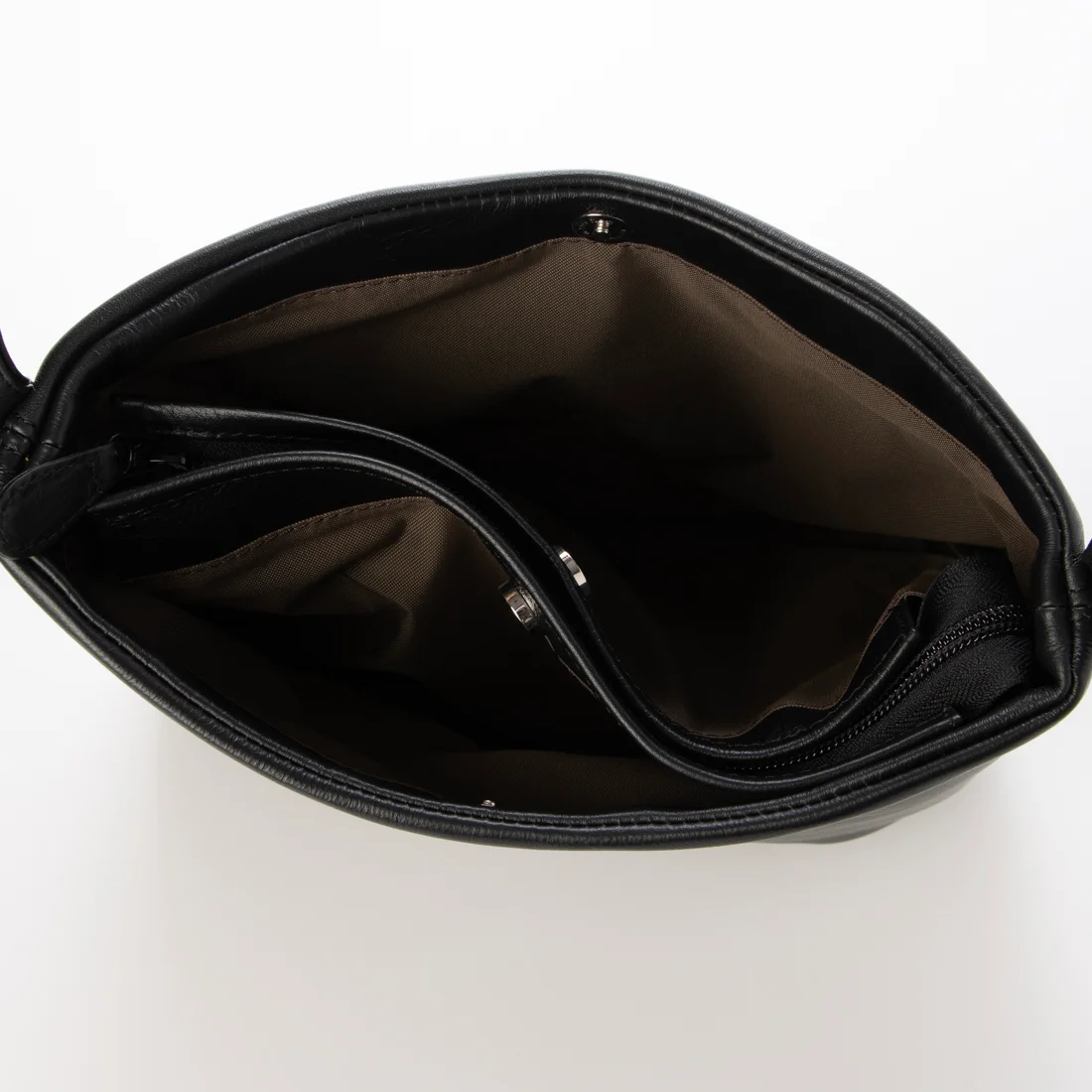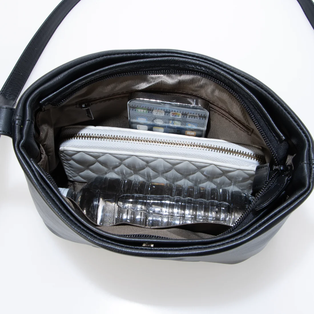 メイン収納の前後にはマグネットのポケットがあるあおりタイプで、小物の整理がしやすく小ぶりなバッグながら収納力もあります。