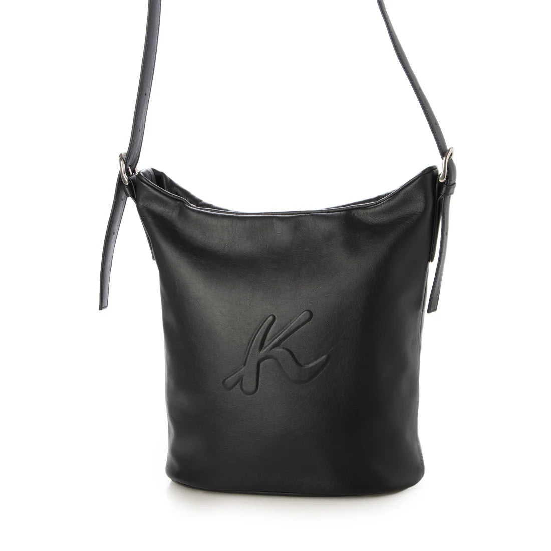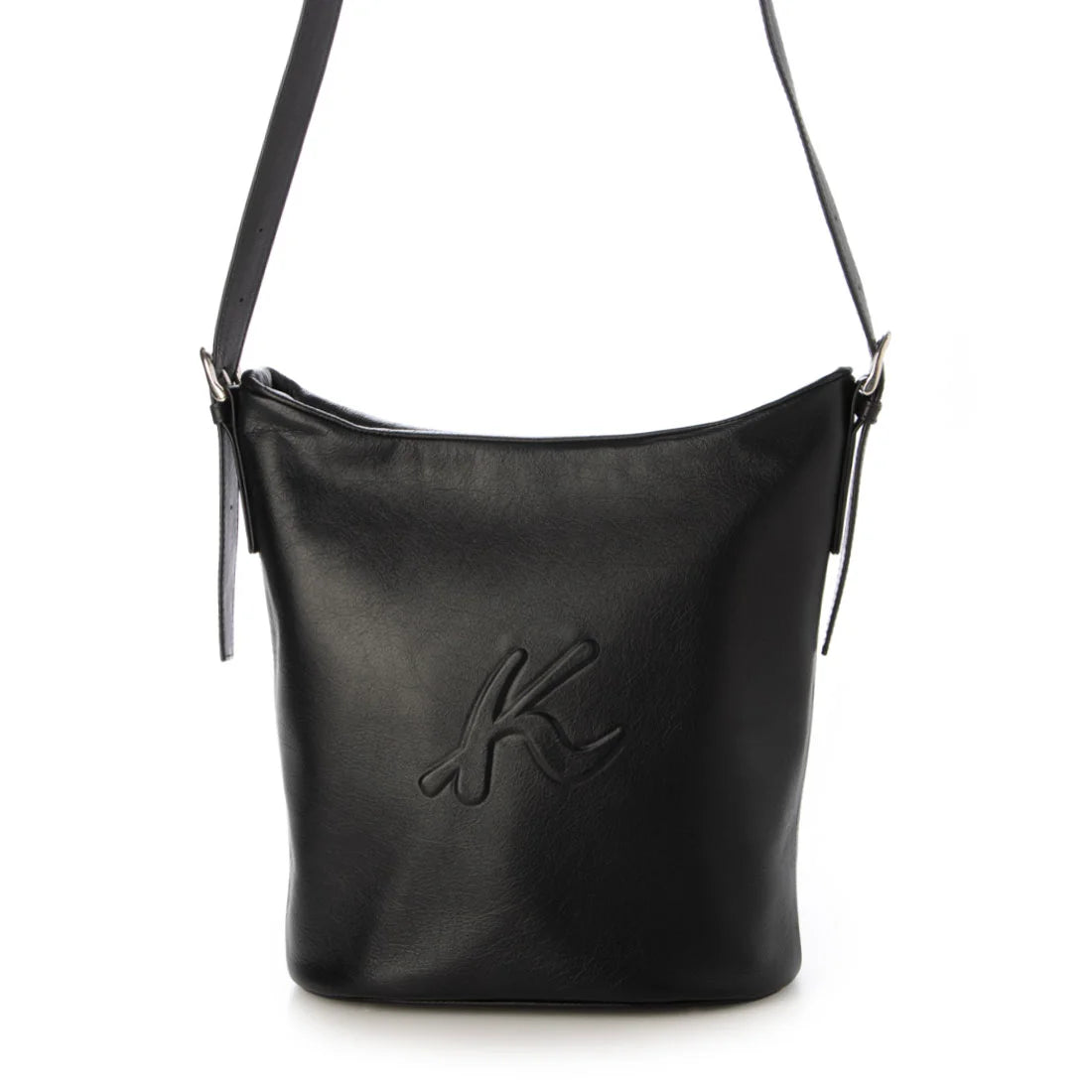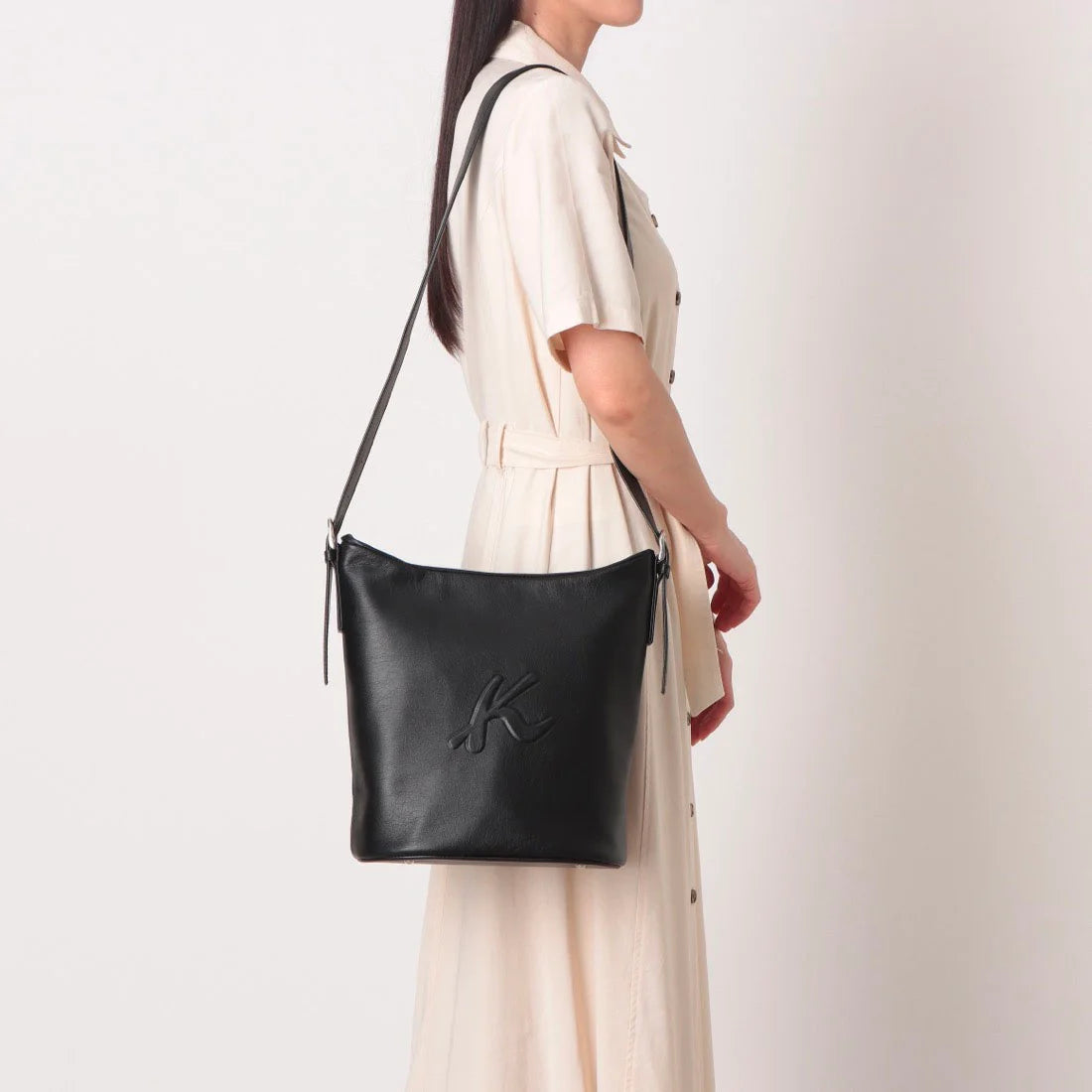 バッグ中央の立体的なKマークが印象的なレザーショルダーバッグ。