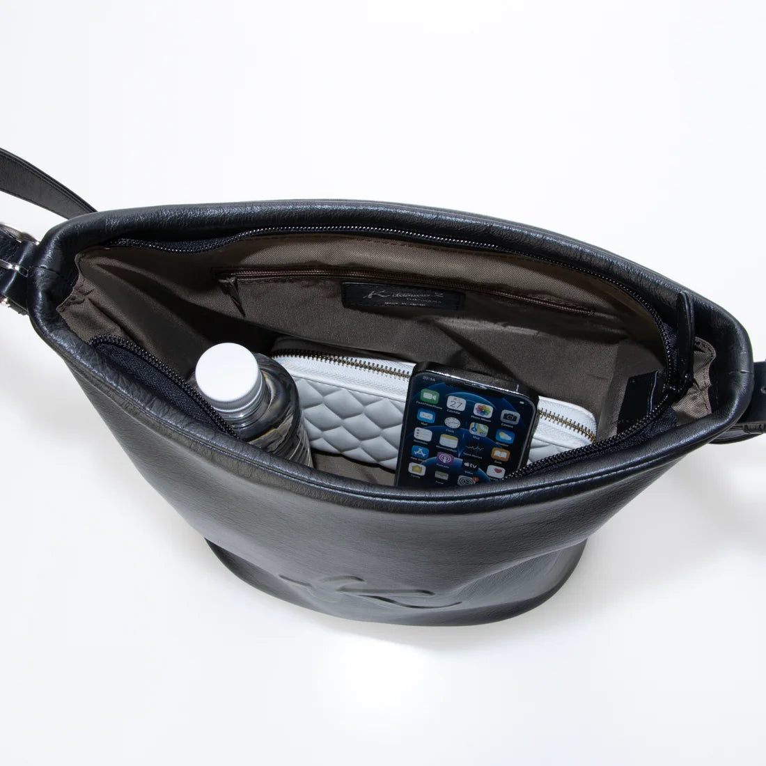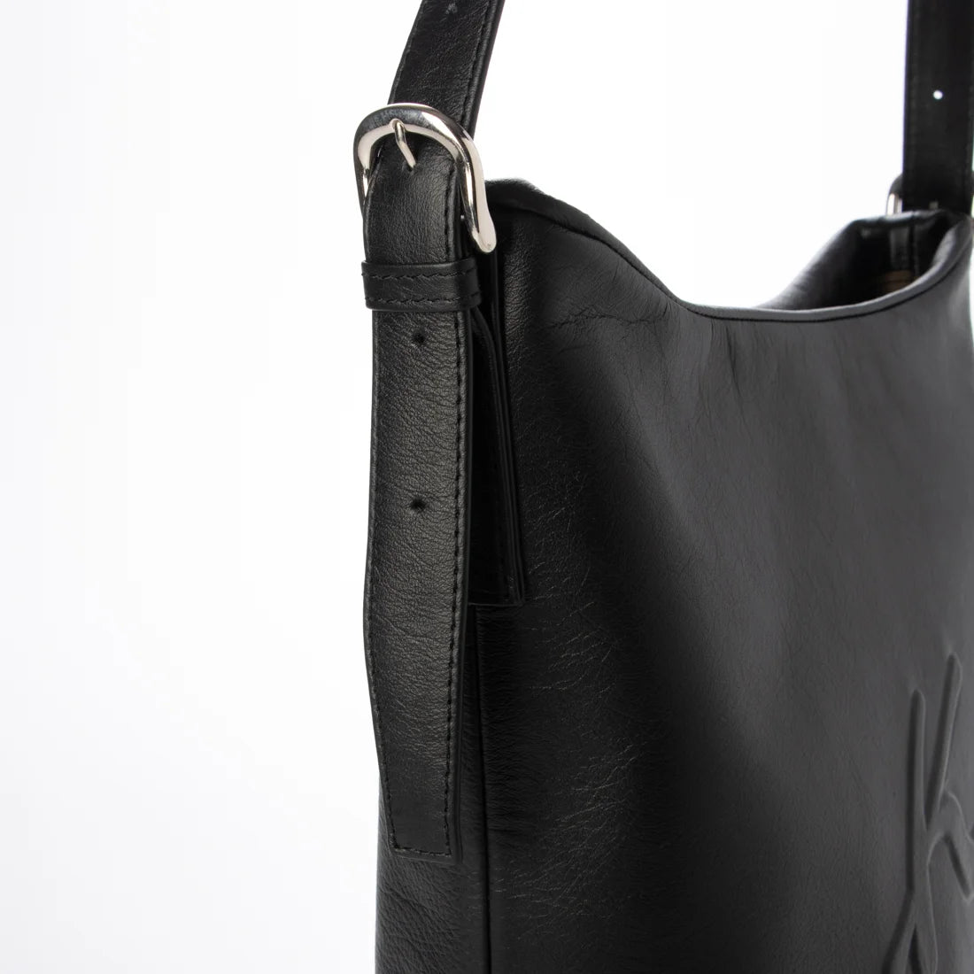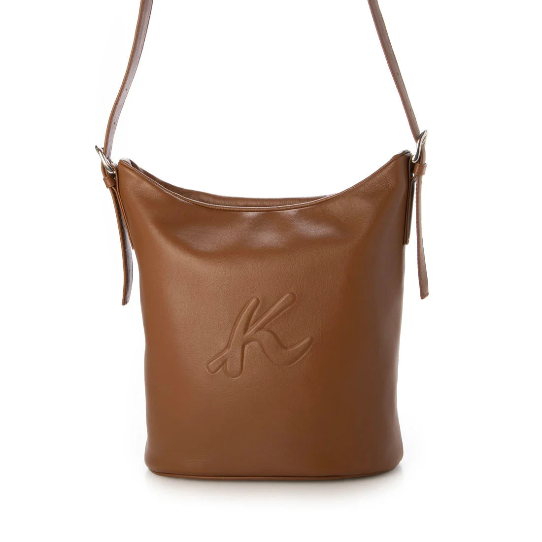バッグ中央の立体的なKマークが印象的なレザーショルダーバッグ。