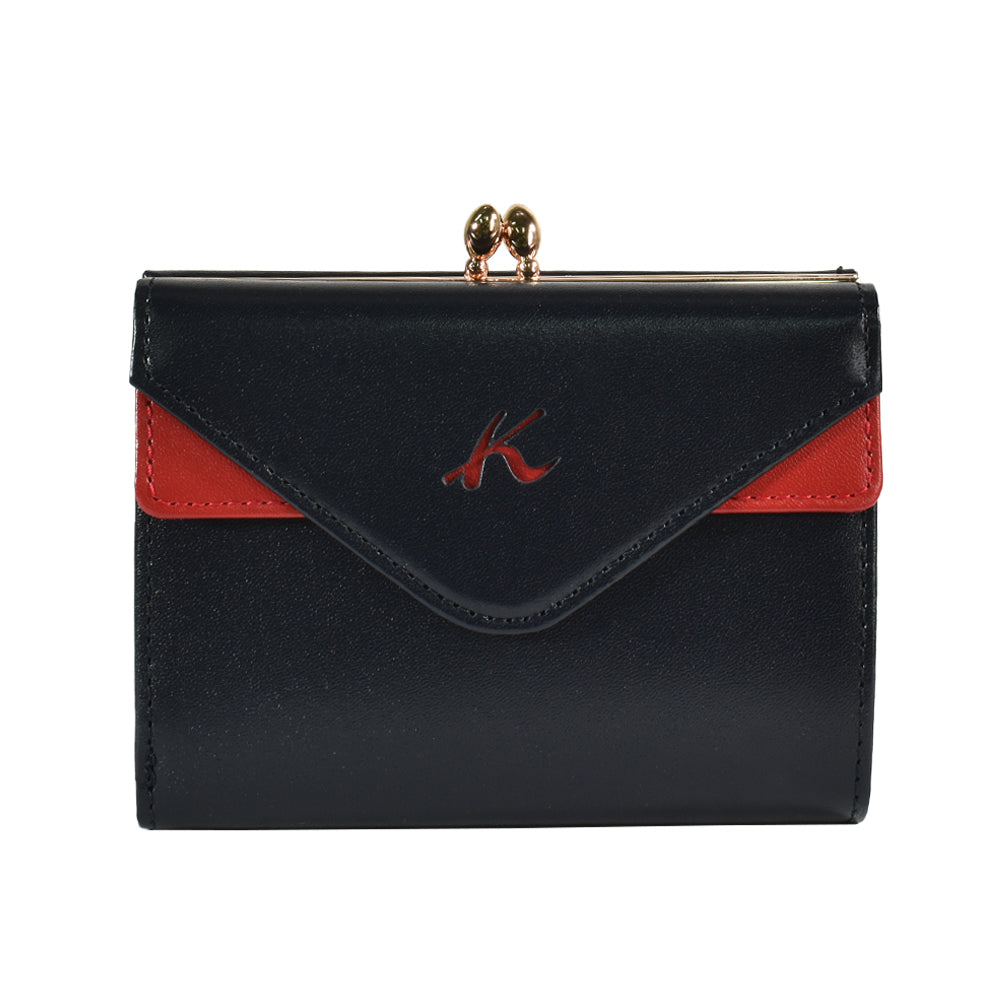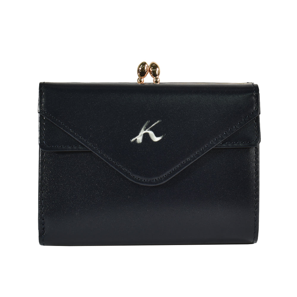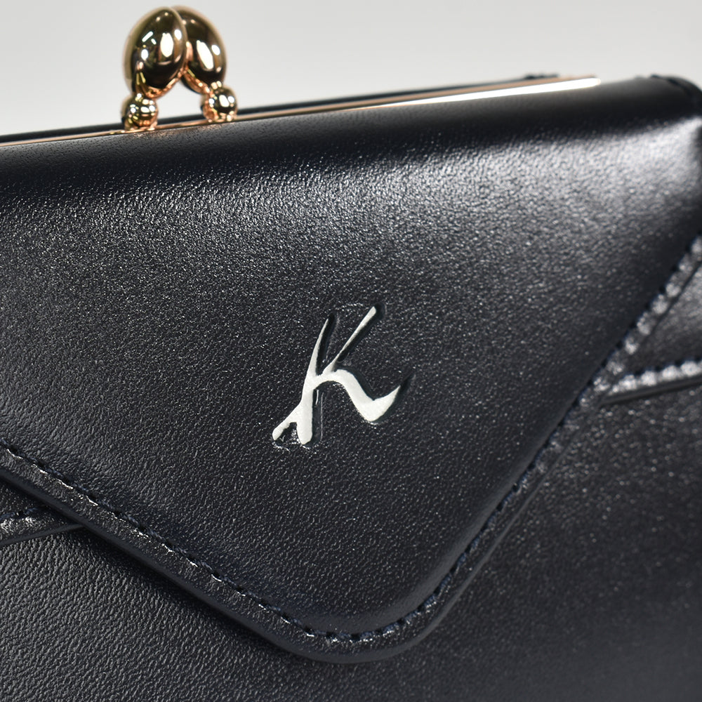 クラシカルな雰囲気漂う口金付きの二つ折り財布。