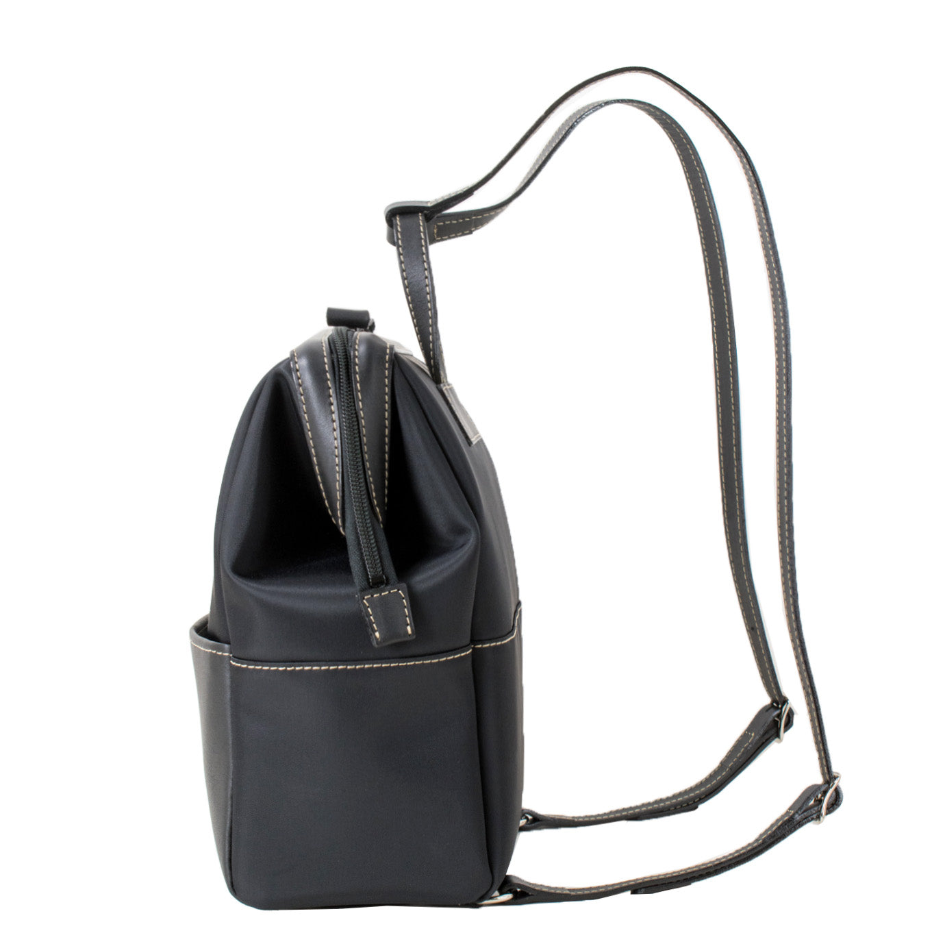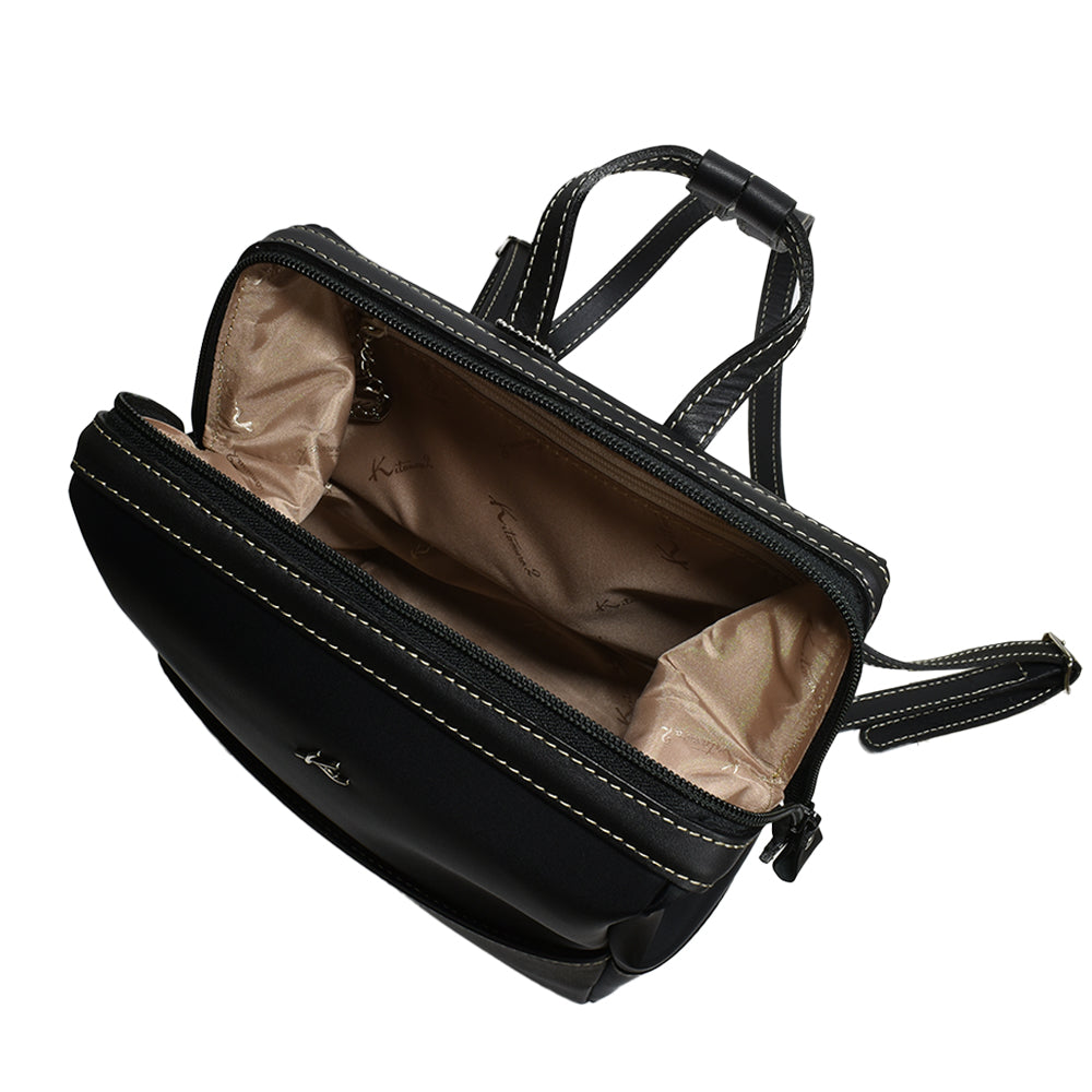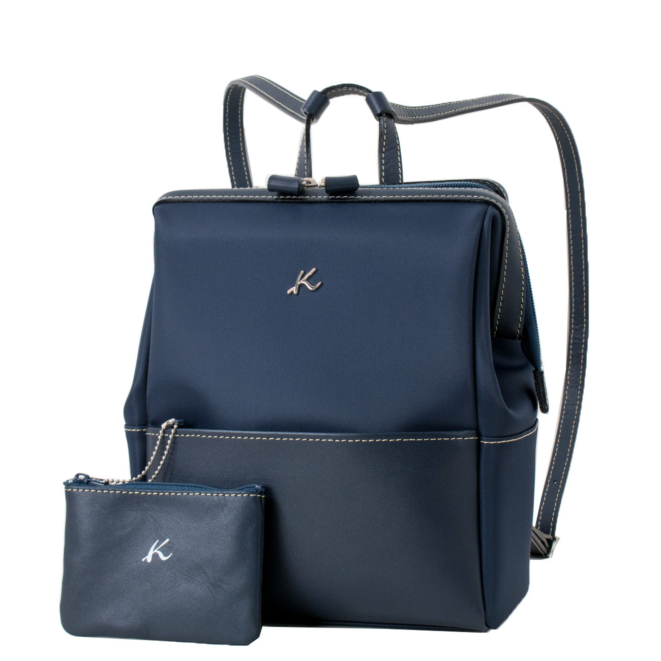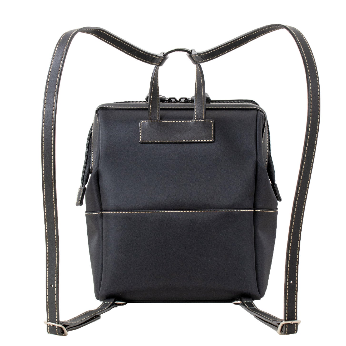【内部】ファスナーポケット×1、オープンポケット×1 【外観】正面ファスナーポケット×1、底鋲あり、ミニポーチ付(H8.5×W12.5cm) |