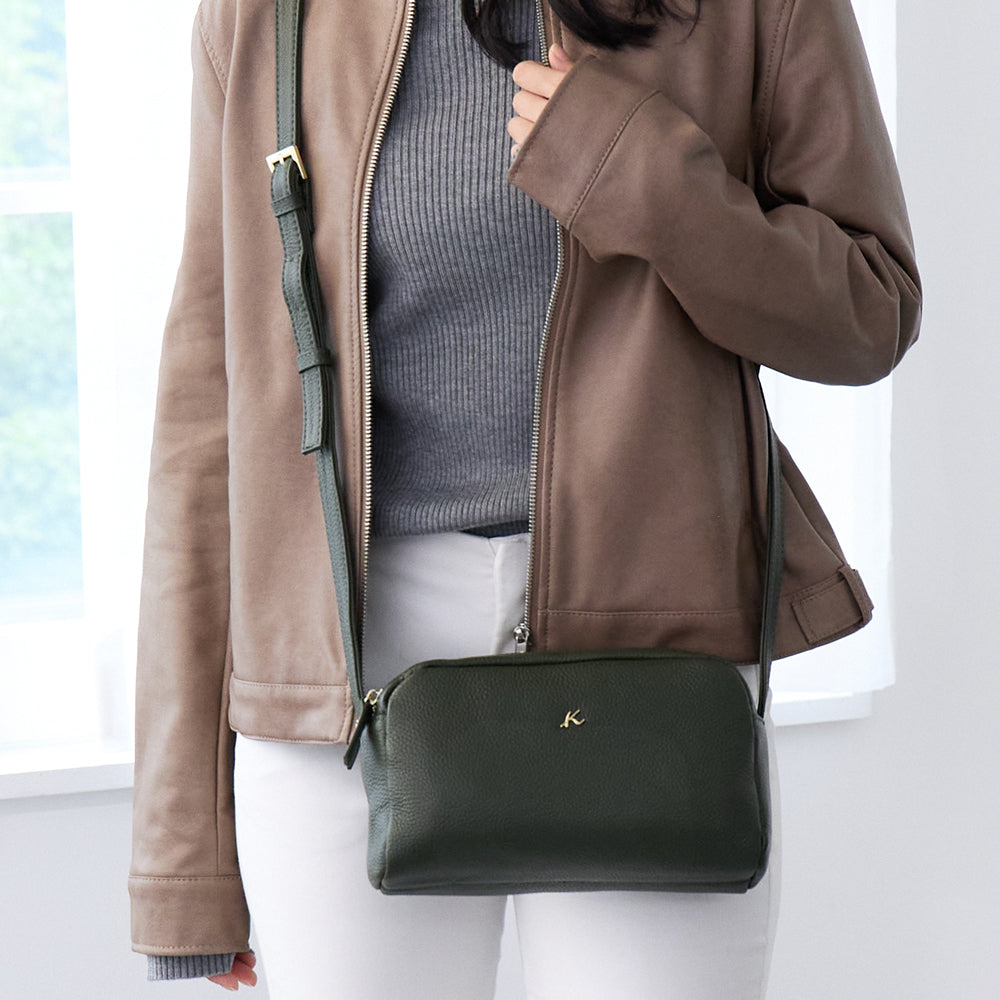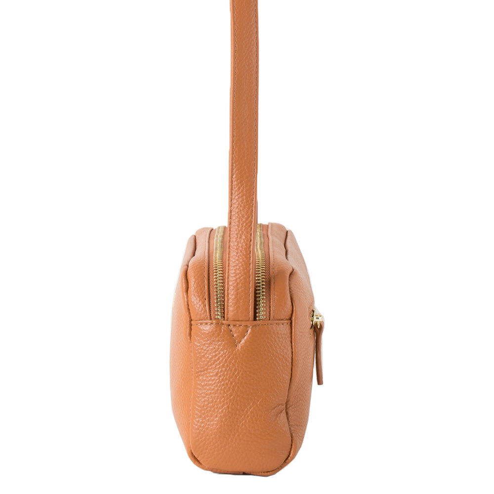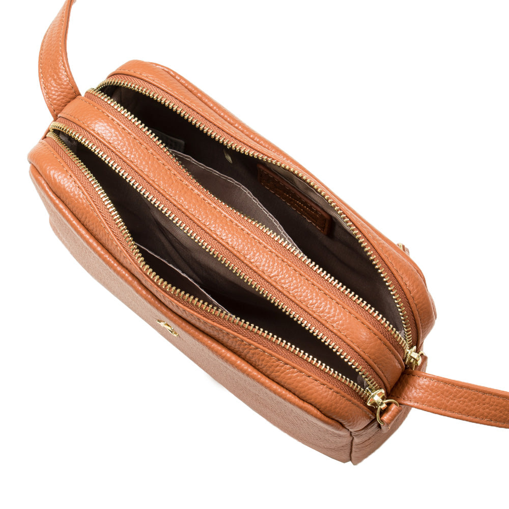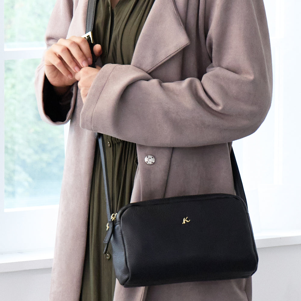 ゴールドの金具がラフ過ぎない印象で、仕切りのあるダブルファスナー仕様となります。