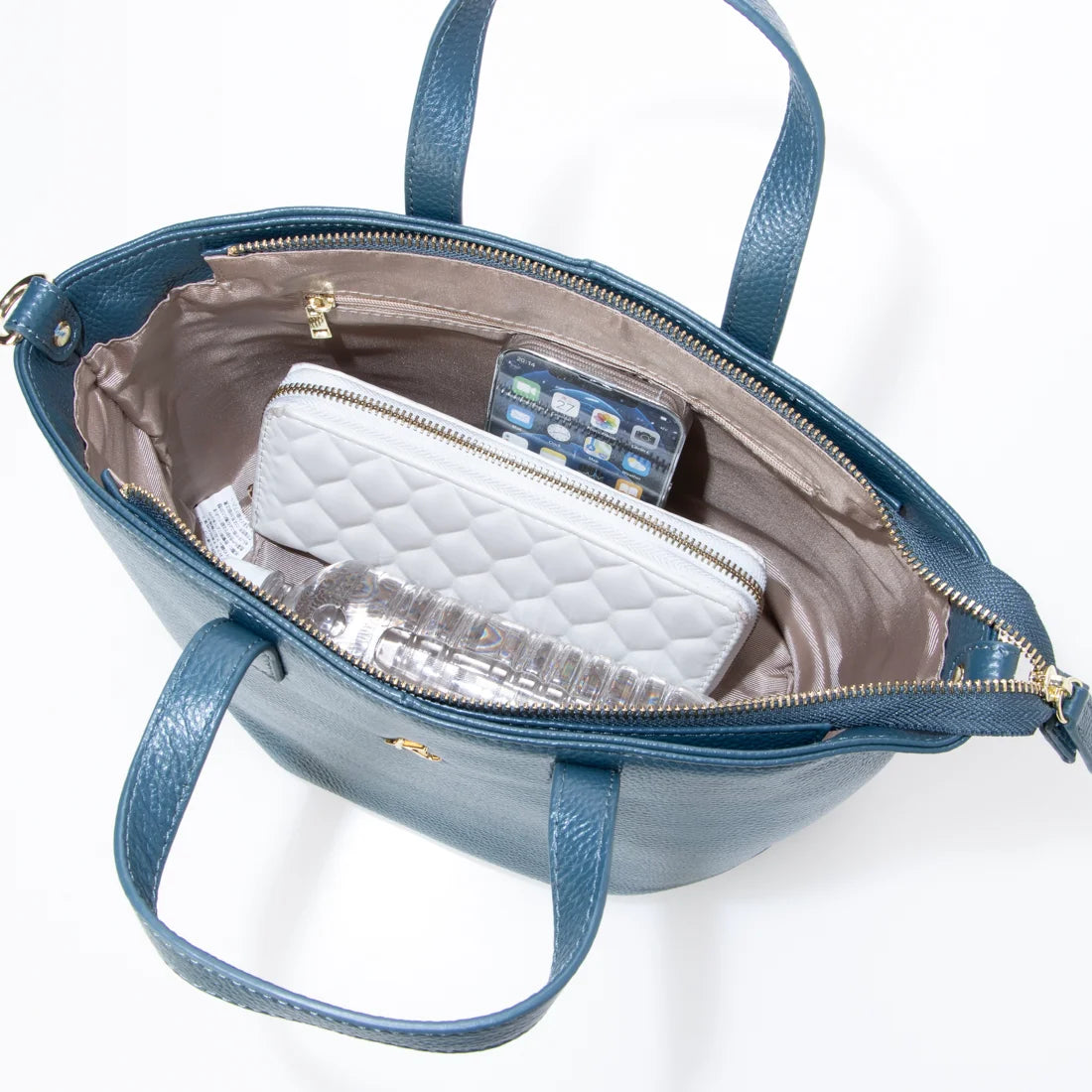 長財布、500mlボトル(横)、化粧ポーチ等がしっかり入るデイリーに使いやすいハンドバッグです。