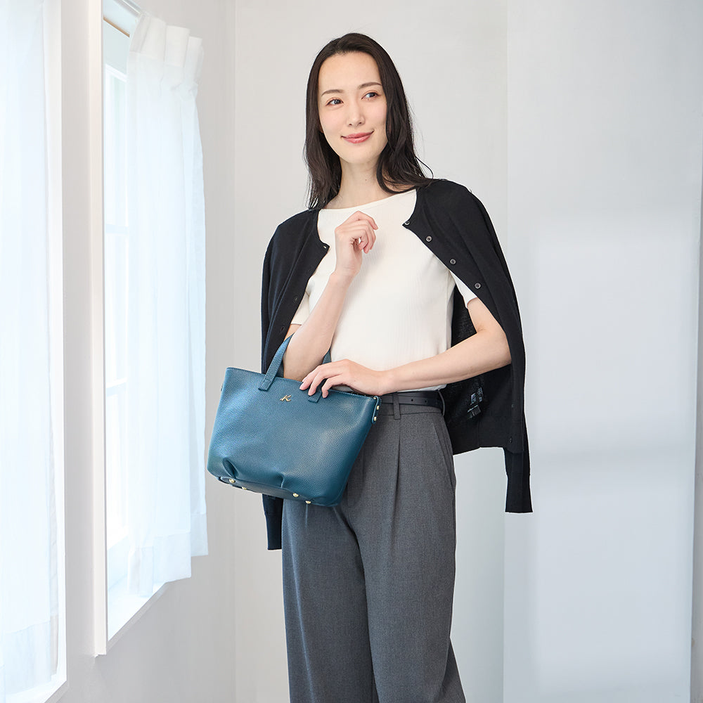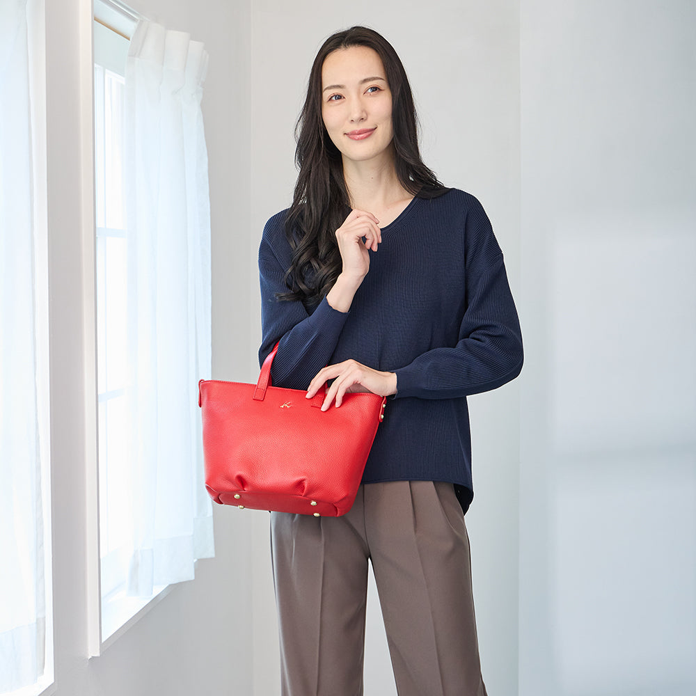 ふっくらとした丸みを帯びたシルエットは収納力に加えてカジュアルさを演出。